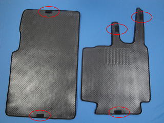 助手席側 : シート足元までマットを延長、 ズレも裏側滑りとめゴム加工+マジックテープ付